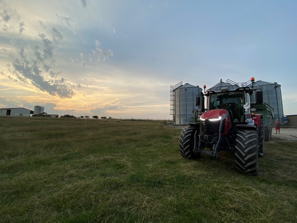 Cette année, la moisson a été un peu particulière. Après trois années consécutives de sécheresse estivale, ce mois de juillet a été extrêmement pluvieux. On avait commencé à rentrer un peu d’orge avant le 14 juillet, puis on s’est pris 60 mm d’eau ce qui nous a arrêtés net. Le temps que tout sèche, on a repris que le lundi suivant. Ça a été une semaine intense ! En cinq jours, on a dû tout rentrer.