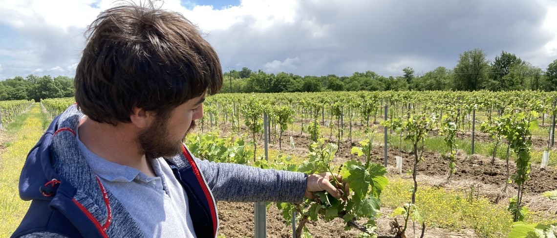 Un mois après les gelées dévastatrices, c’est en suivant Tristan Jegun dans ses vignes que le constat est le plus frappant. Le vigneron compare un pied de vigne ayant gelé avec un rescapé situé quelques rangs plus loin. « Il est beaucoup moins feuillu. Certaines tiges ont réussi à repartir, mais avec moitié moins de bourgeons ». Et qui dit moitié moins de bourgeons, en dit autant en perte de récolte. Si ce n’est plus.